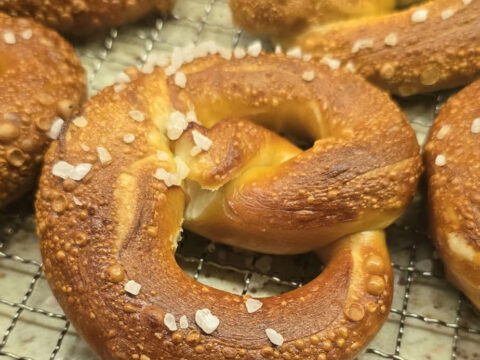Dışı iri tuz kristalleriyle kaplı, karakteristik düğüm şekline sahip, dışı hafif gevrek ve içi yumuşak bir Alman hamur işidir. Pretzel’in Almanca yazımı “Brezel” veya “Bretzel”dir; İngilizce dünya kullanımında ise “Pretzel”